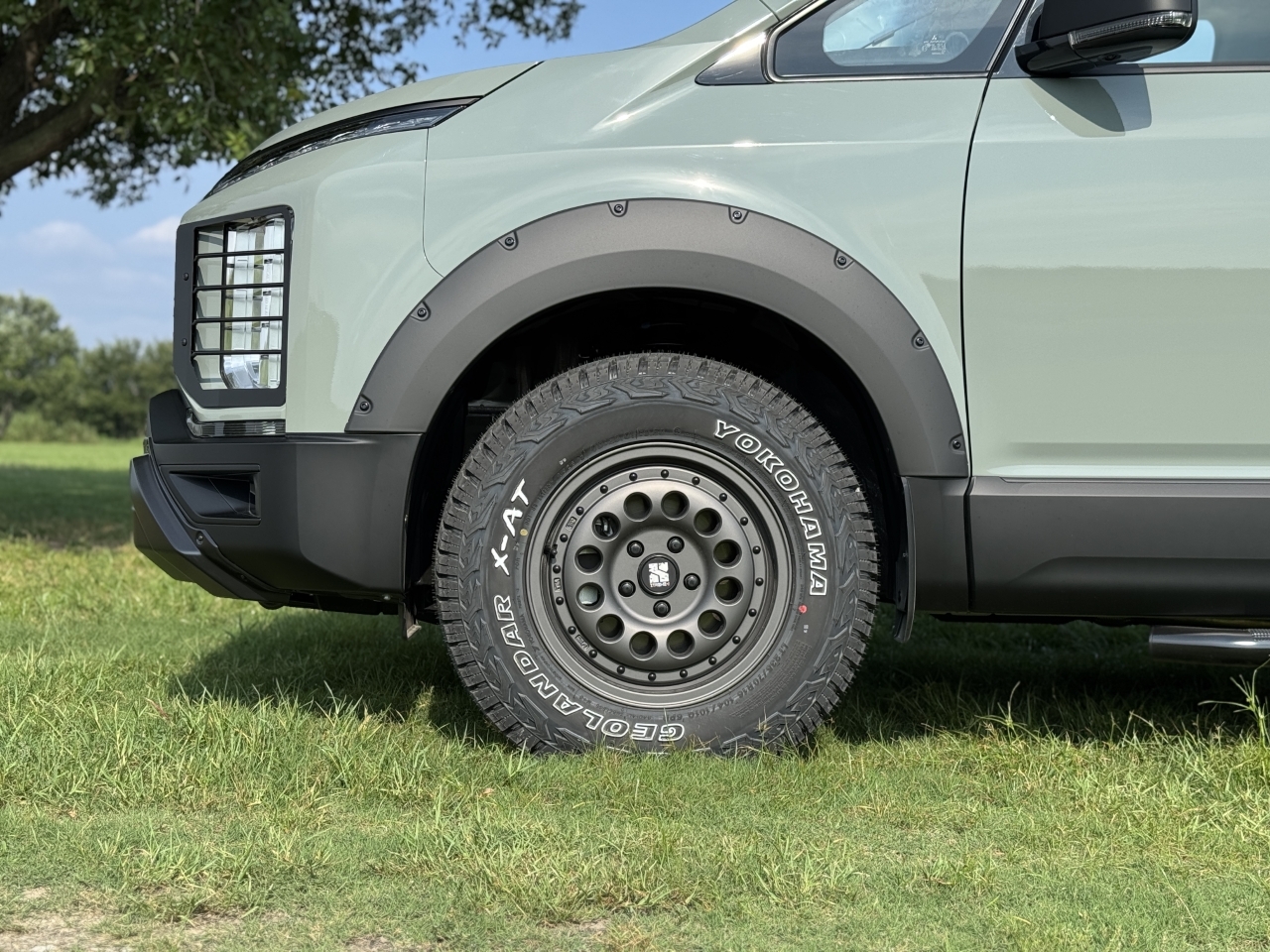 外装はアースカラー:アーバンカーキにオールペイントし、タイヤ×ホイールはオフ感たっぷりのGEOLANDAR:X-AT×XTREME-J:RUGGEDをチョイス☆