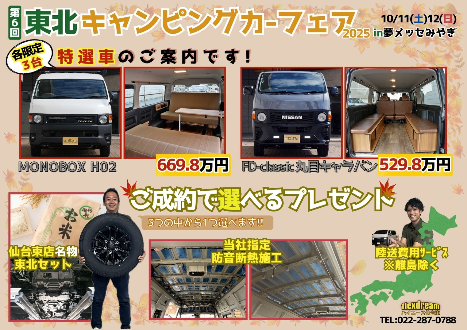 2025年10月11日(土)12日(日)に開催される東北キャンピングカーフェア2025にflexdreamも出展させていただく事が決定いたしました♪