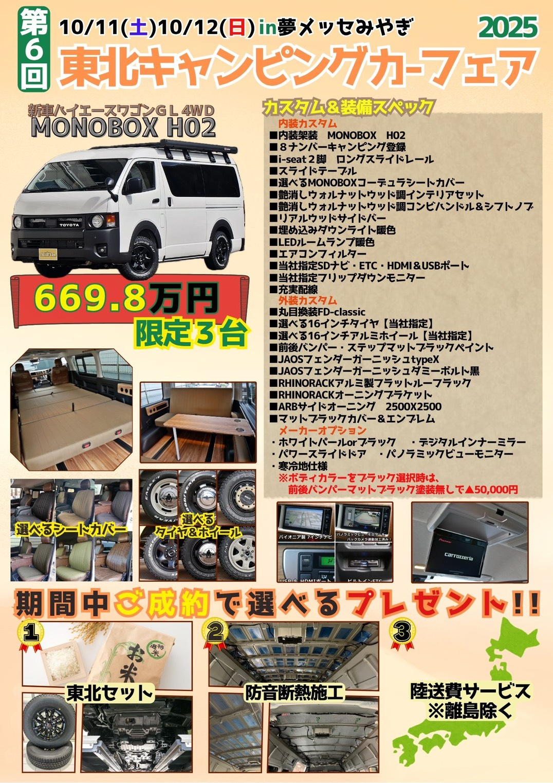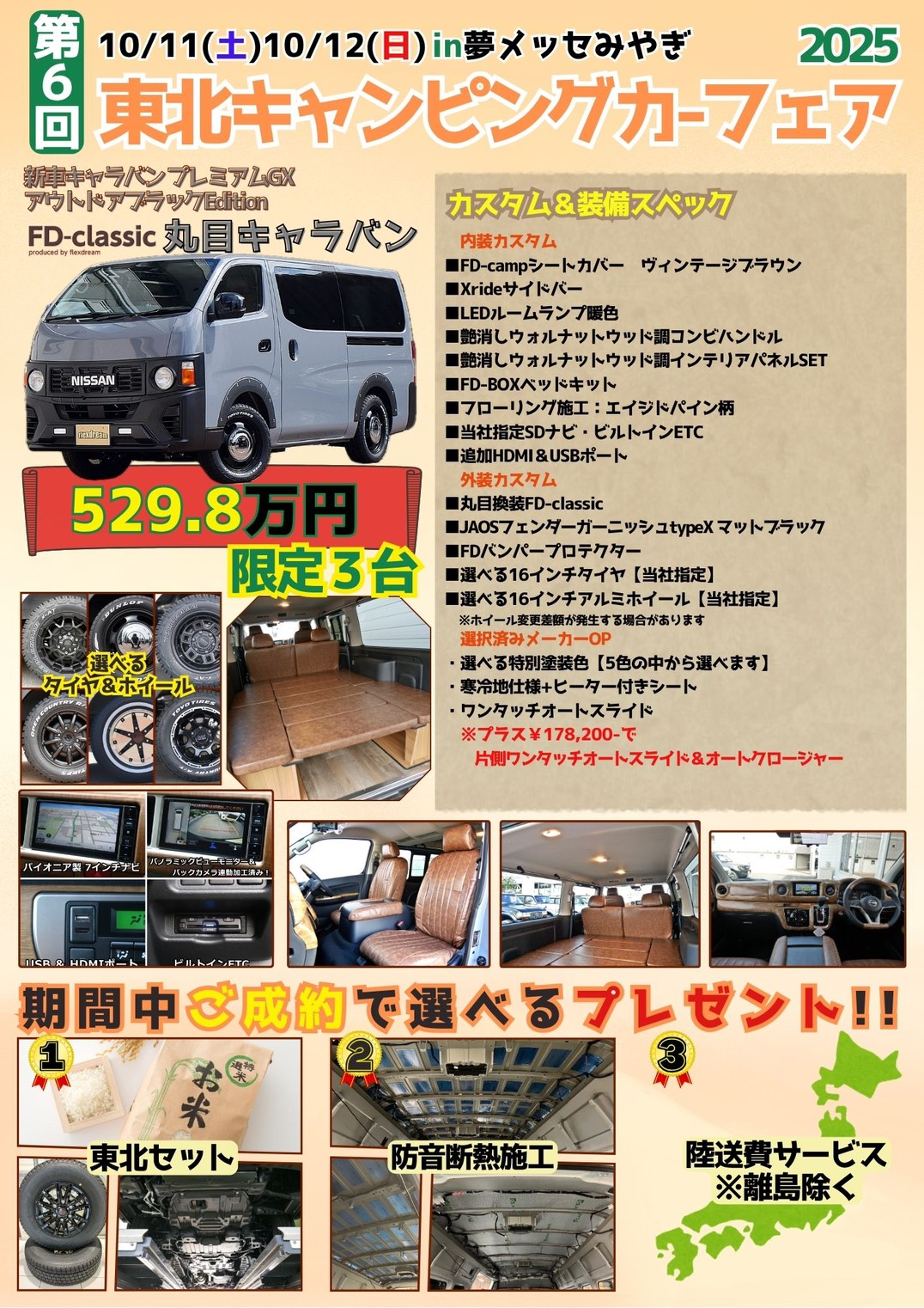 東北キャンピングカーフェア2025で大商談会を開催!とってもお得なハイエース・デリカ・キャラバンをご用意してお待ちしております!