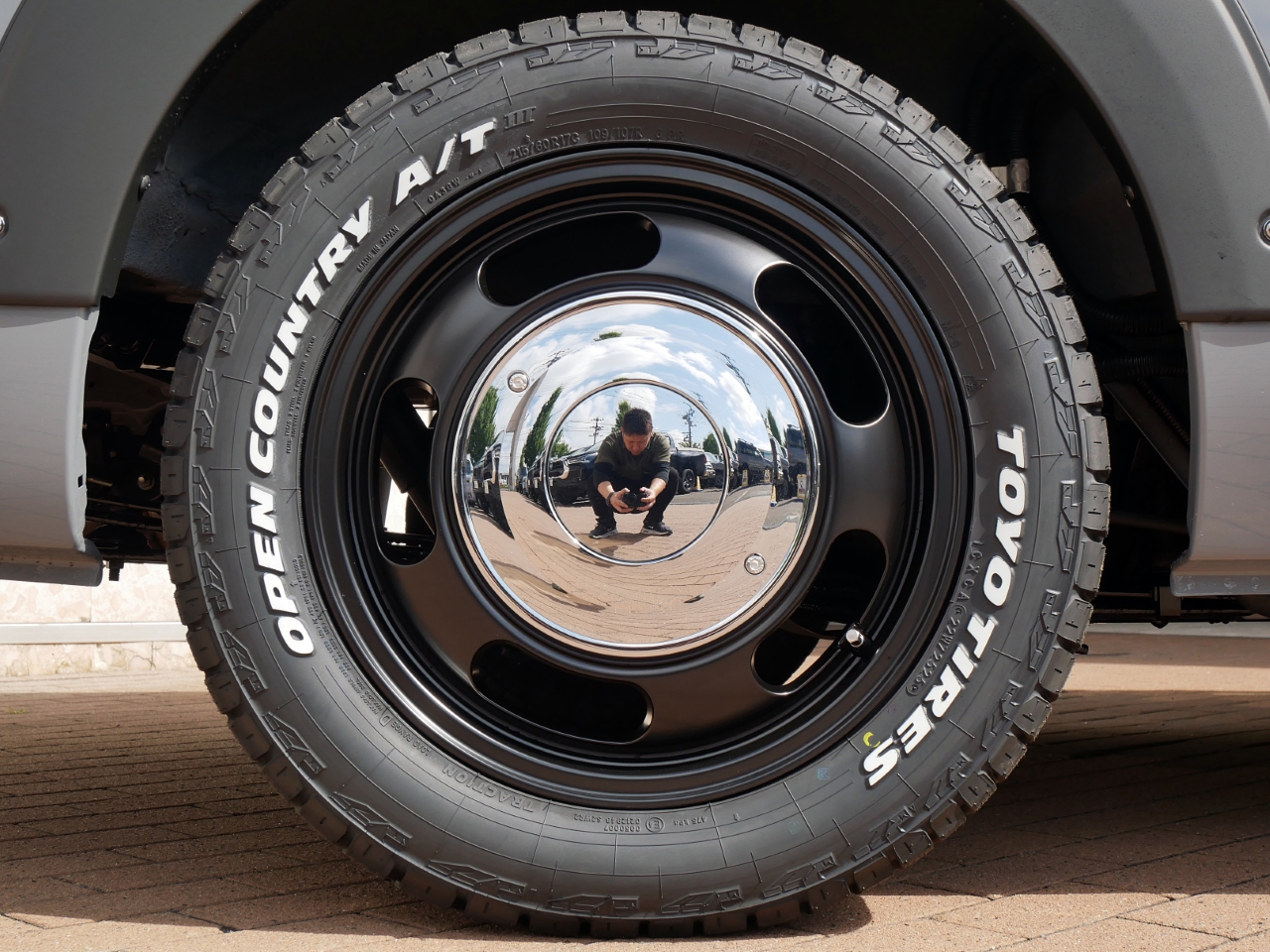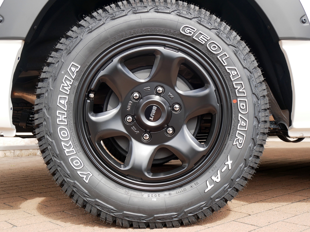 外装はアースカラー:アーバンカーキにオールペイントし、タイヤ×ホイールはオフ感たっぷりのGEOLANDAR:X-AT×XTREME-J:RUGGEDをチョイス☆