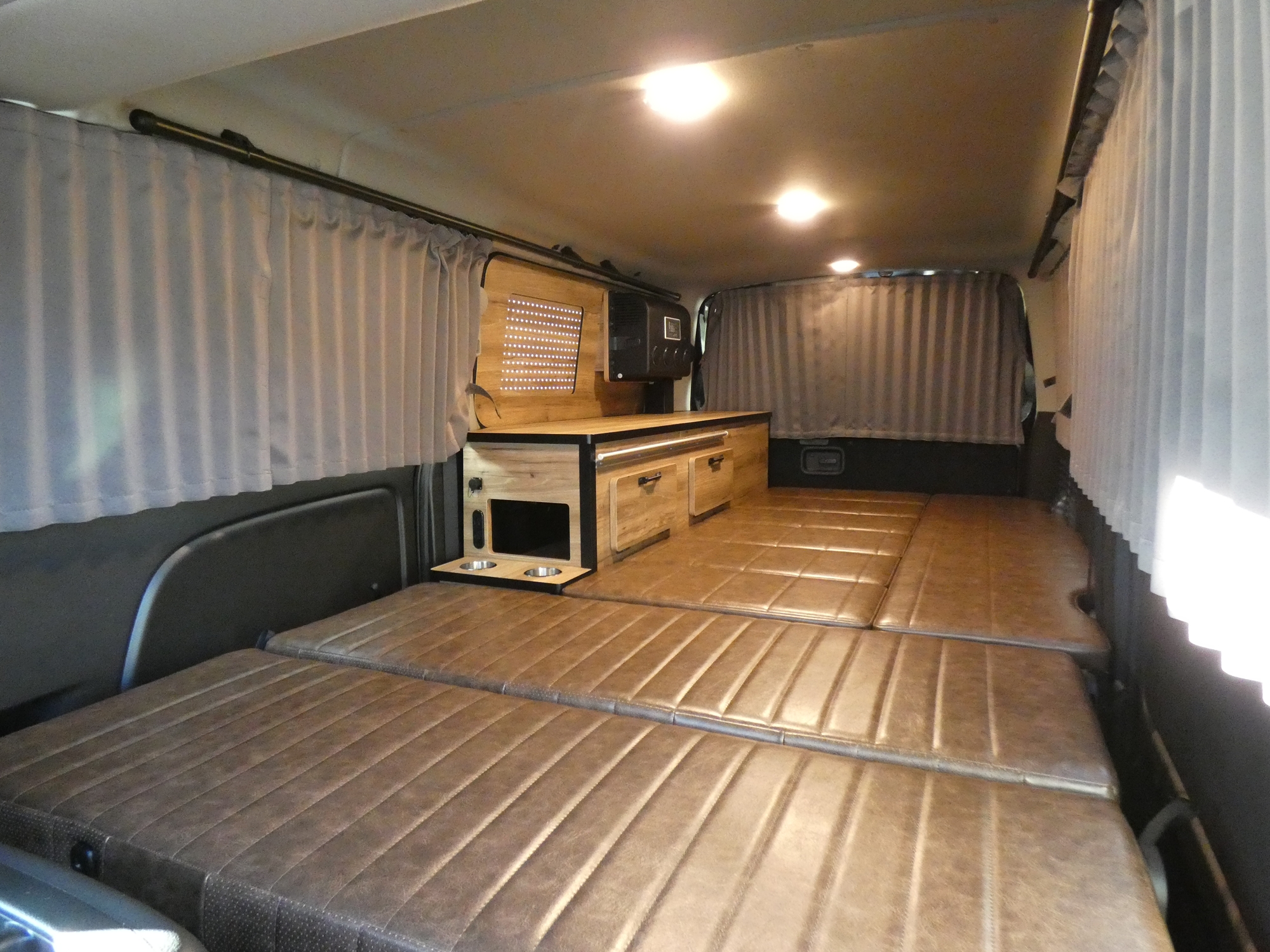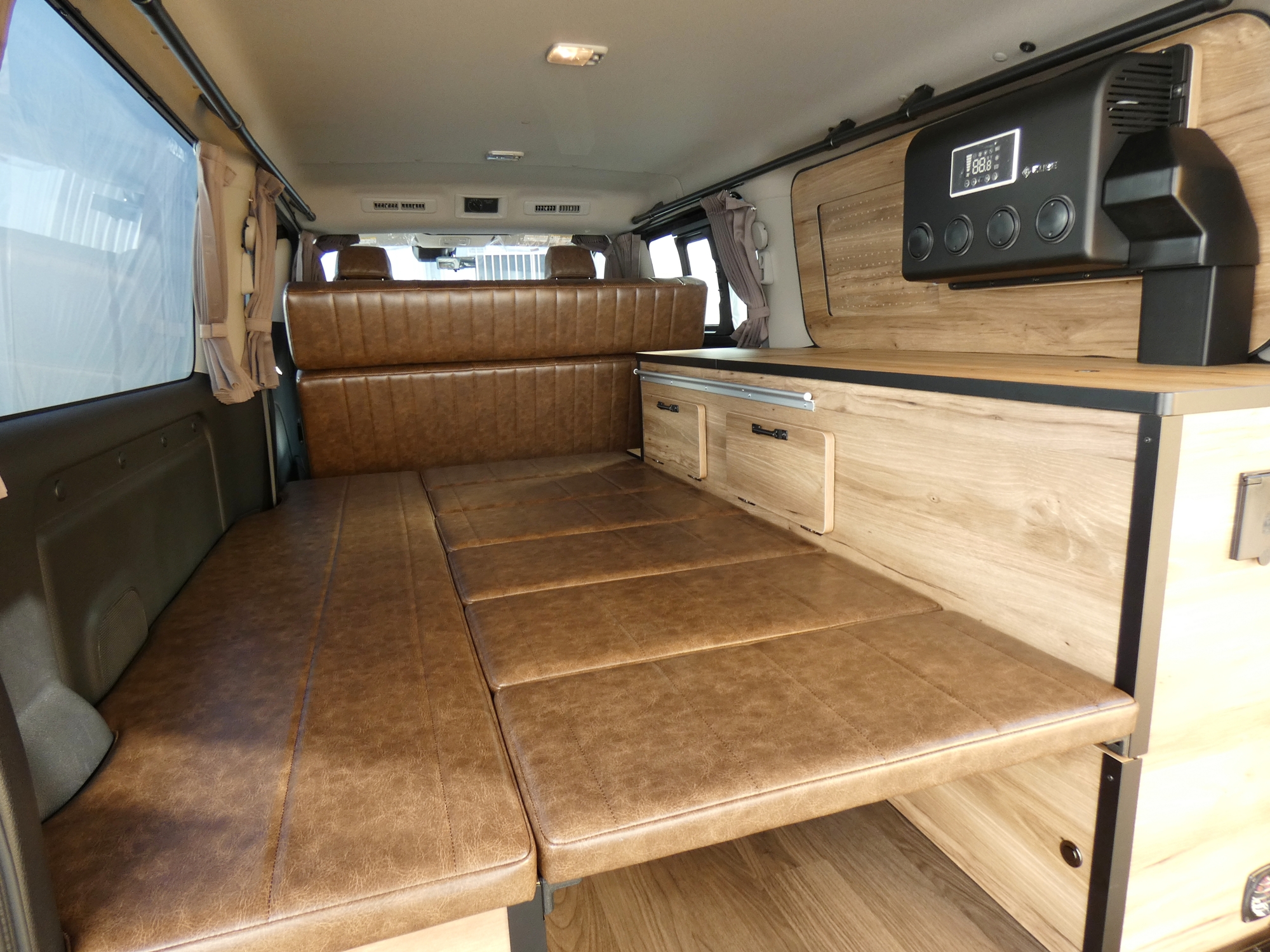 インテリアはMONOBOX C-01≪8人乗り8ナンバーキャンピング≫をベースにし、センターコンソールやアシストグリップ、6面フルカーテンなどファミリーカーとしては勿論の事、バンライフ/車中泊を思い切り楽しめる車両になっておりますよー☆
